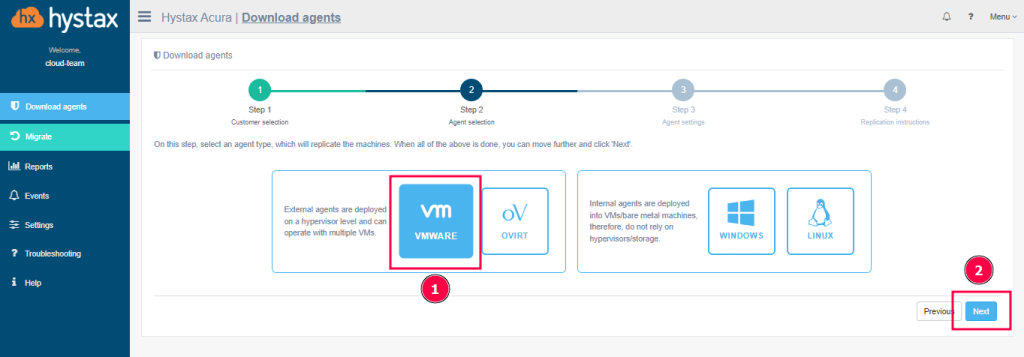 To begin, you need to download the appropriate migration agent. There are two types of agents available: External and Internal. External agents are designed to be deployed at the hypervisor level, providing a broad overview and control of the migration process. Internal agents, on the other hand, are intended for individual VMs or bare metal machines, offering a more granular level of migration.