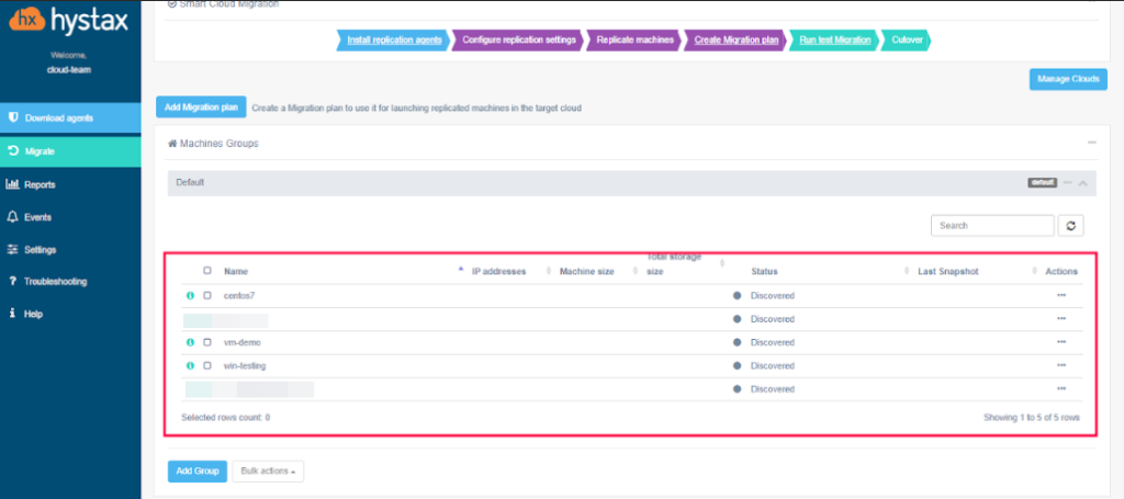 After downloading the agent, use the agent image to create a new VM. This newly created VM will serve as the base for the migration process. The agent will automatically detect all the VMs in your environment, displaying them as “Discovered” on the migration dashboard. This feature simplifies the management of multiple VMs during the migration process.