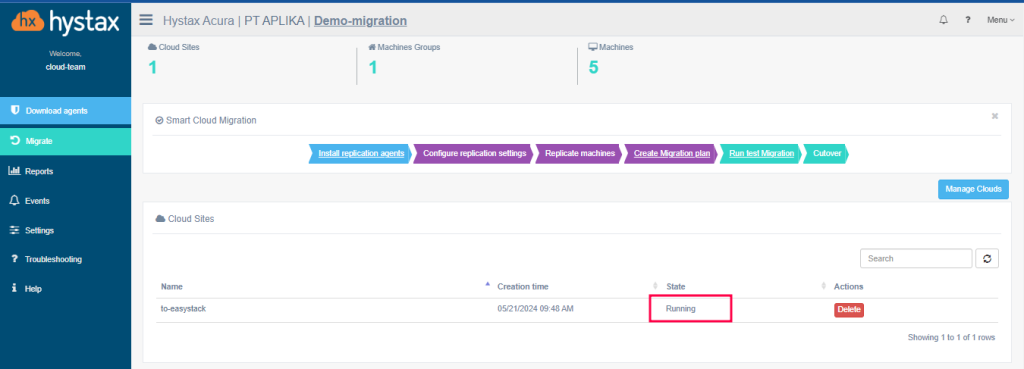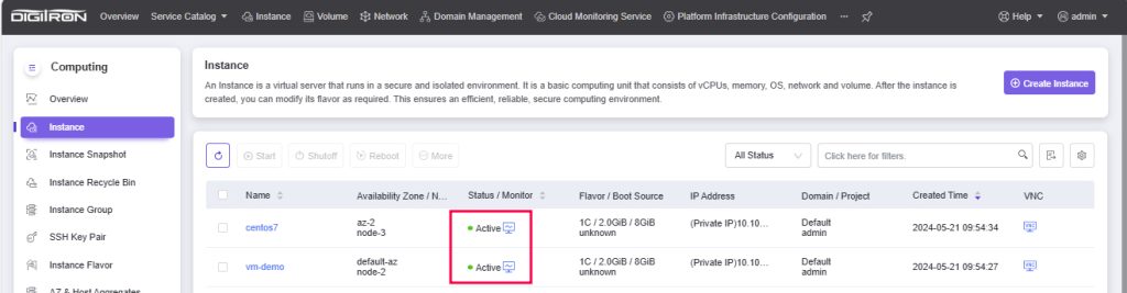 With the migration plan in place, you can begin the actual migration. The system will carry out the migration according to the plan, and you can monitor the process in real-time. Once the migration is complete, the status of the cloud site will change to “running,” and the migrated VM in Digitron IaaS will be marked as “active.”
